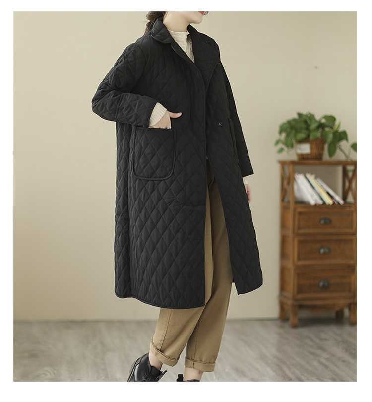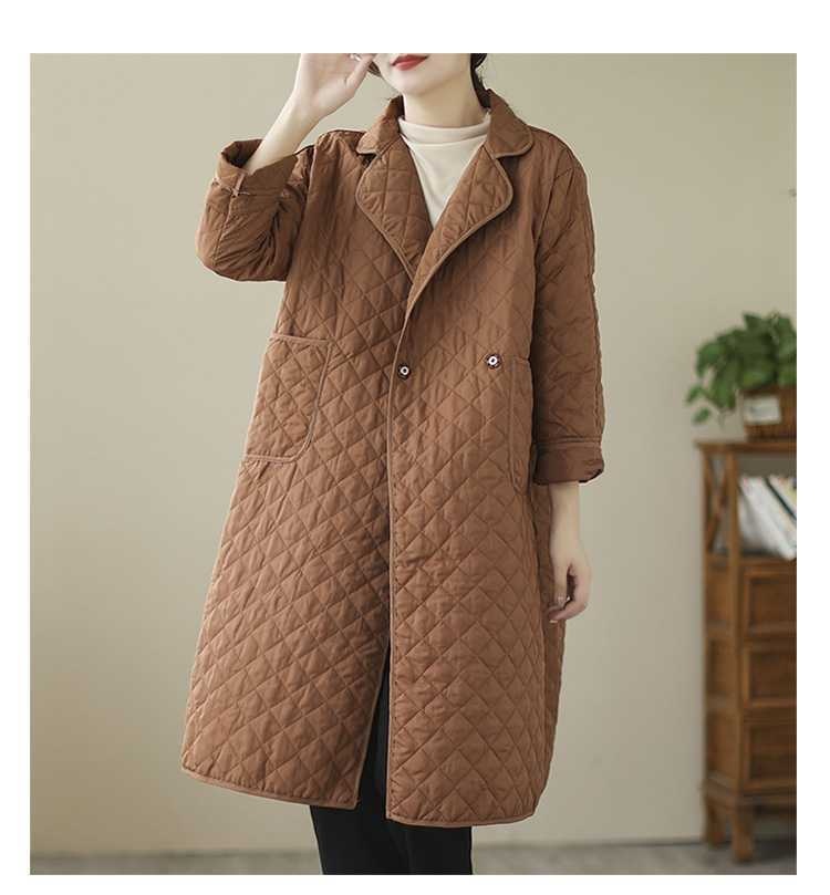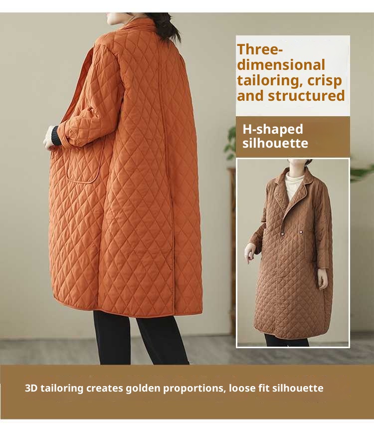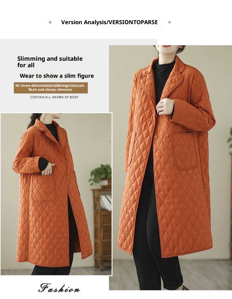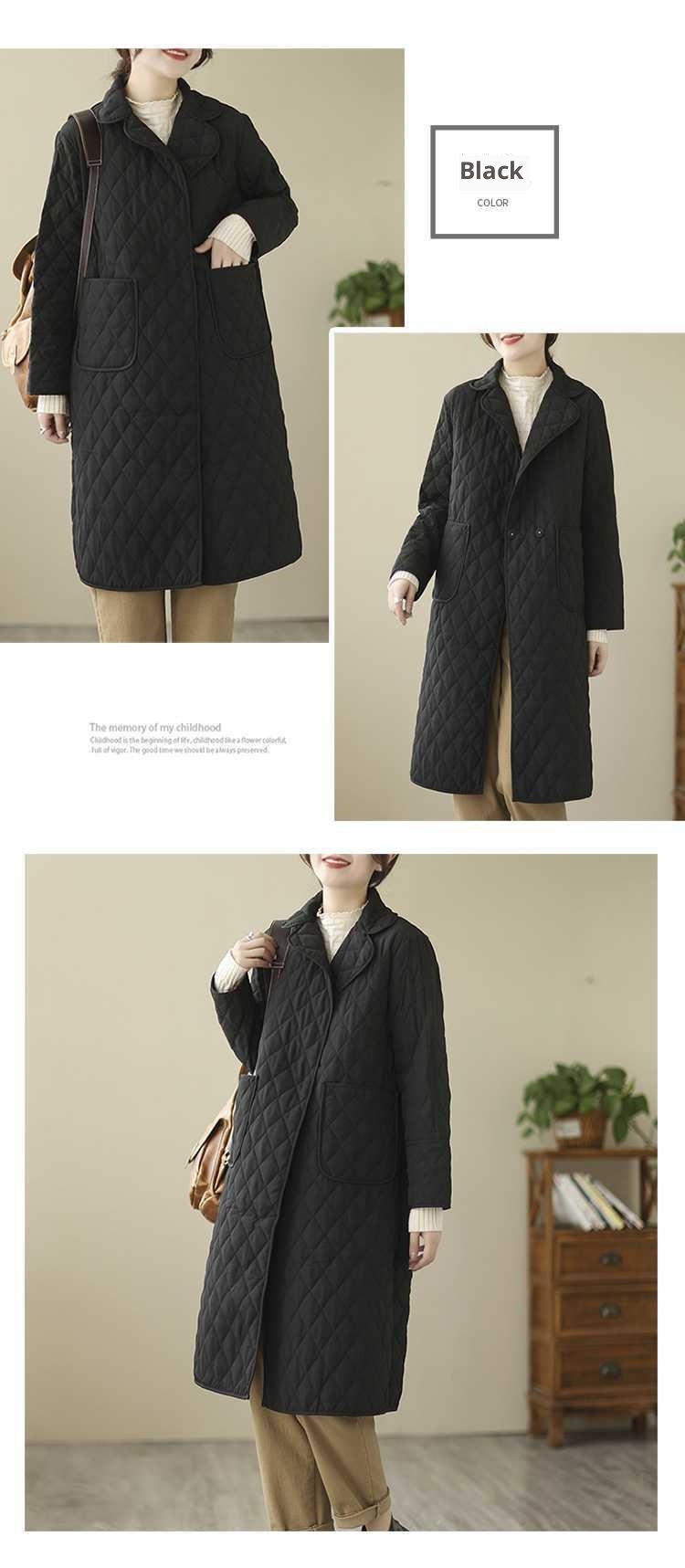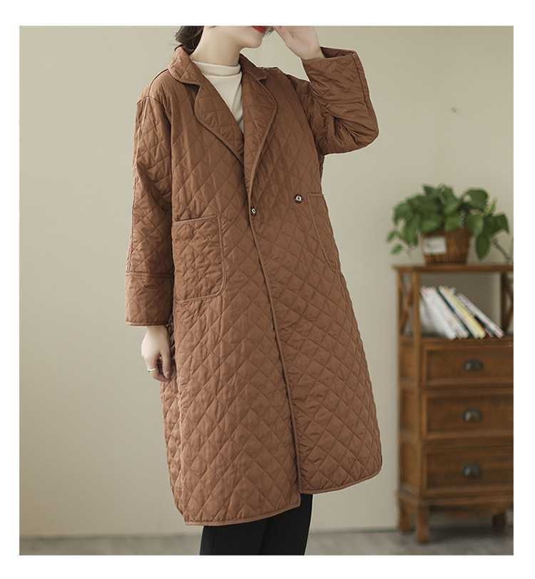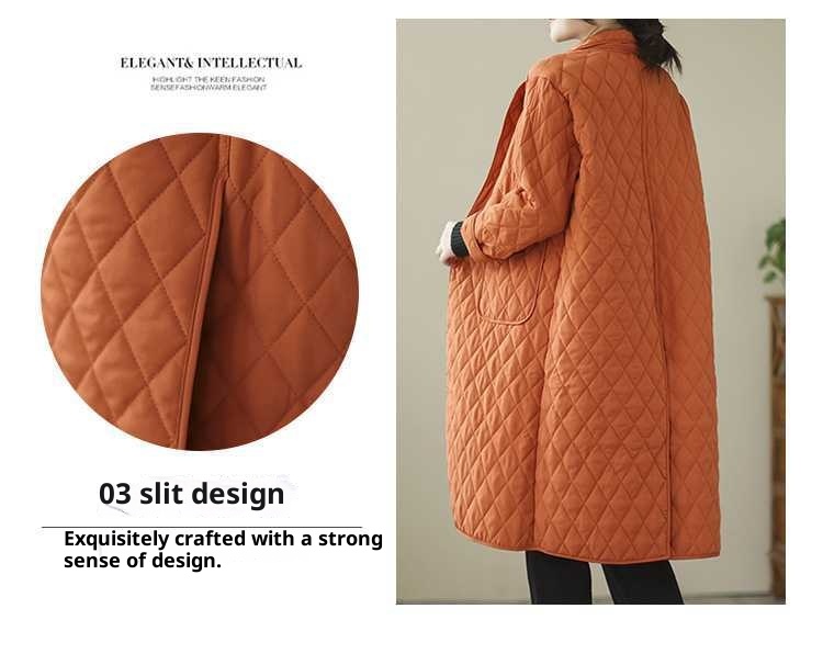Artistic Retro Diamond Lattice Cotton-padded Clothes Mid-length Coat And Trench Coat