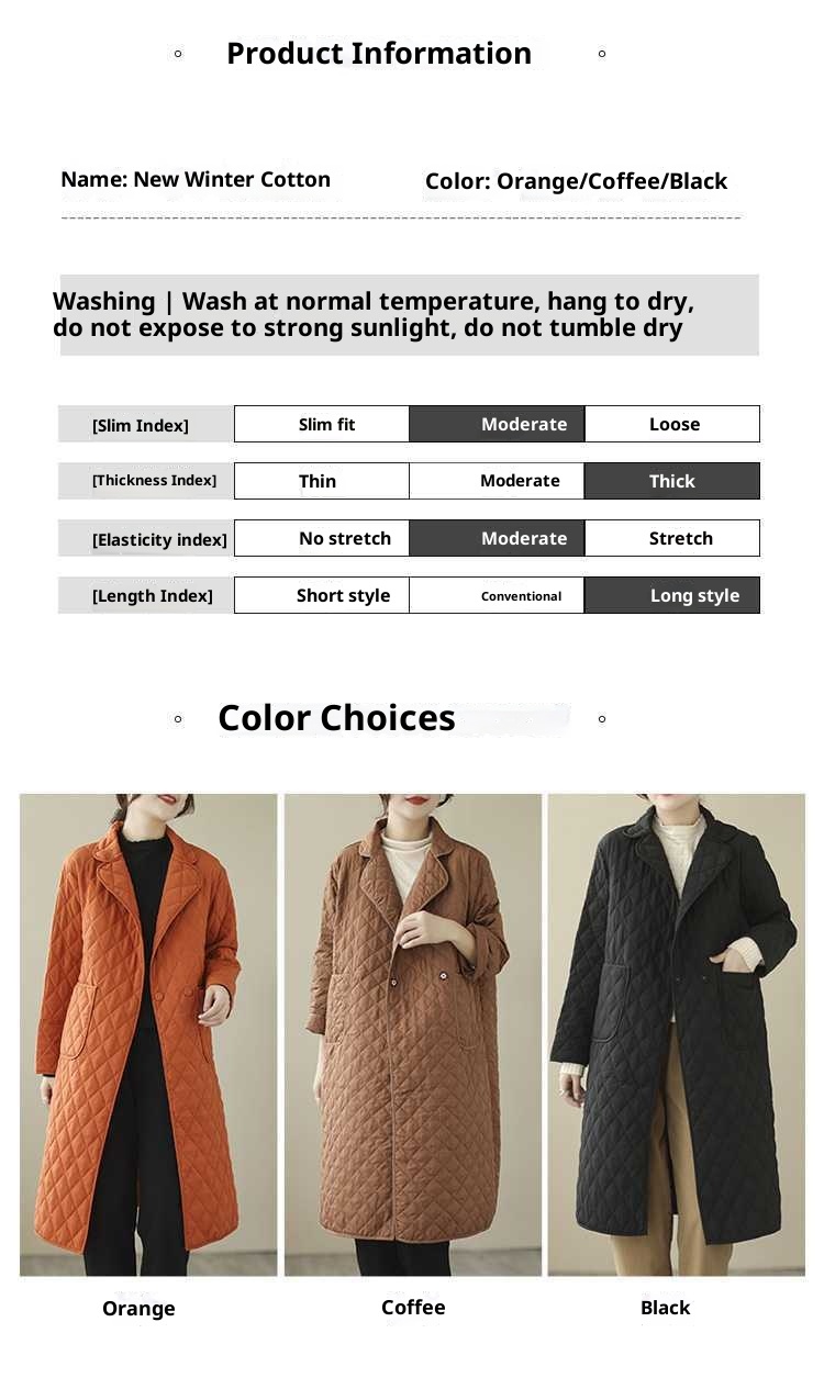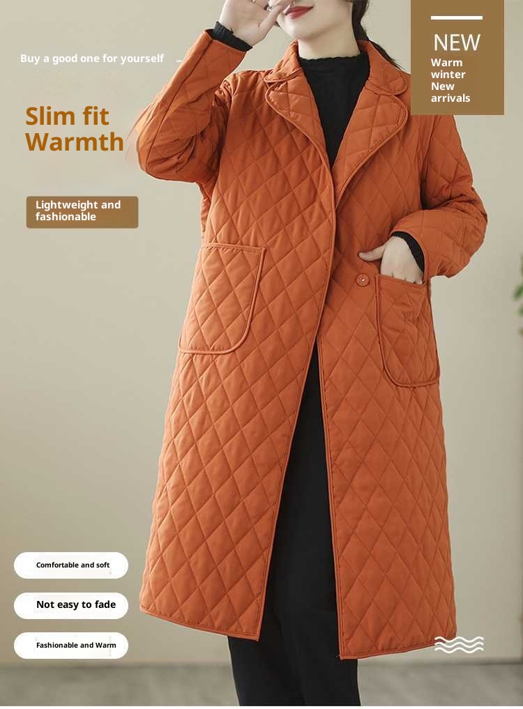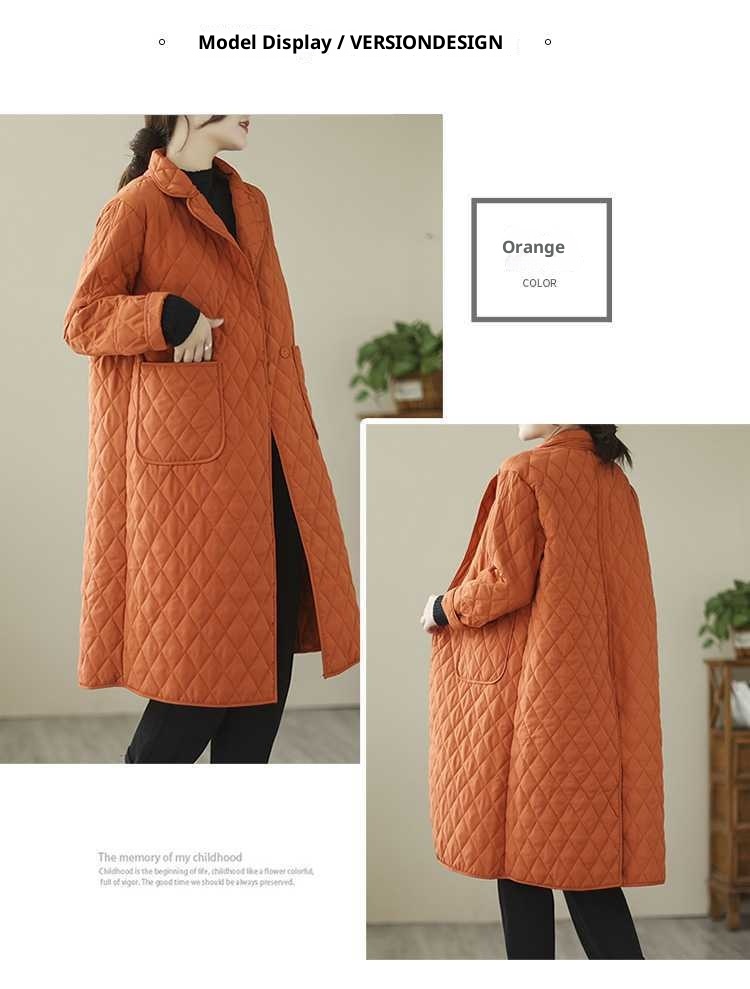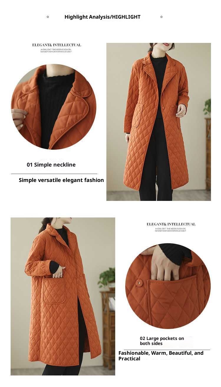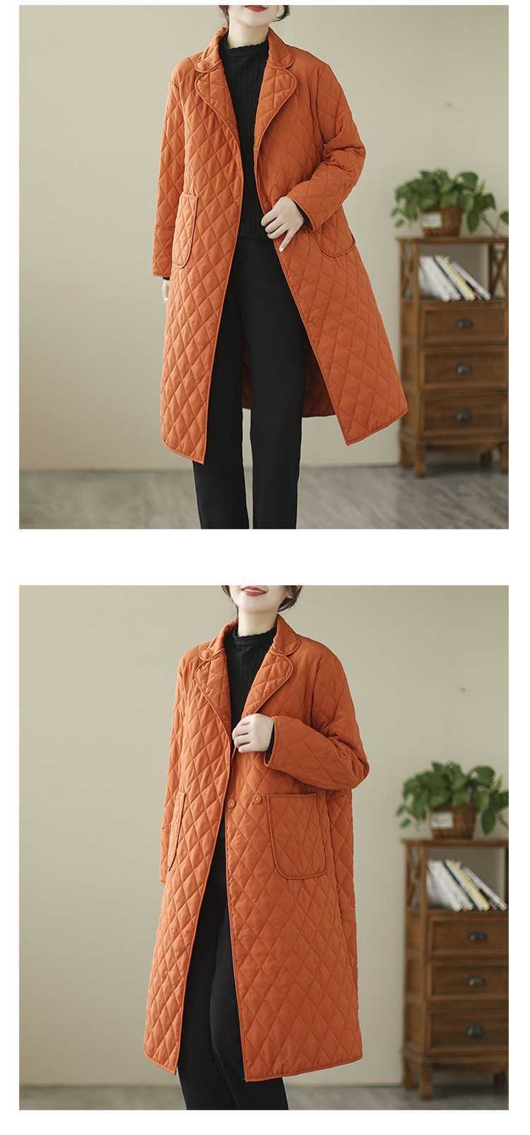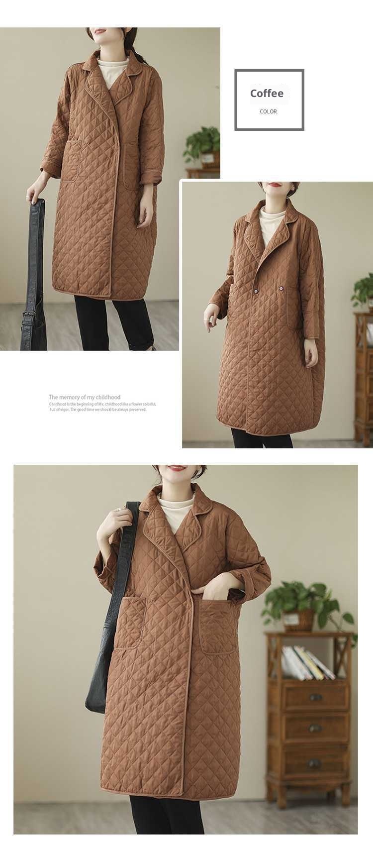 Artistic Retro Diamond Lattice Cotton-padded Clothes Mid-length Coat And Trench Coat